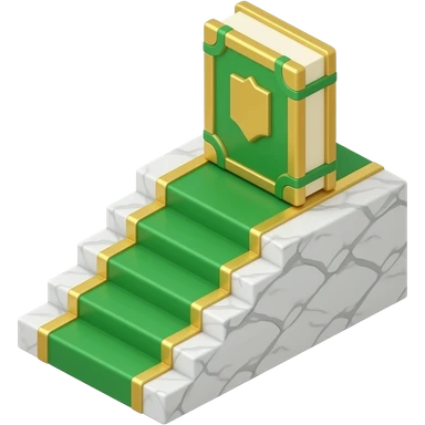 3D isometric marble stairs icon, leading to golden book. Minimalist professional style, emerald green & gold accents. Soft studio lighting, 8k Octane render, ray-tracing detail. Isolated on white background, premium literary aesthetic --v 6.0 emoji