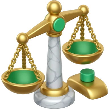 3D isometric scales icon, polished gold and marble. Minimalist professional style, emerald green & gold accents. Soft studio lighting, 8k Octane render, ray-tracing detail. Isolated on white background, premium literary aesthetic --v 6.0 emoji