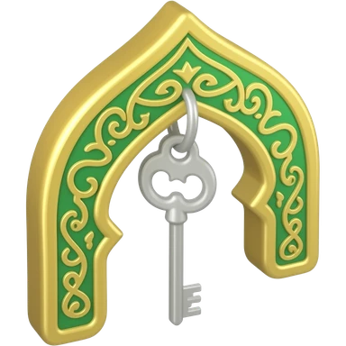 3D isometric ornate key icon, Islamic arch handle. Minimalist professional style, emerald green & gold accents. Soft studio lighting, 8k Octane render, ray-tracing detail. Isolated on white background, premium literary aesthetic --v 6.0 emoji