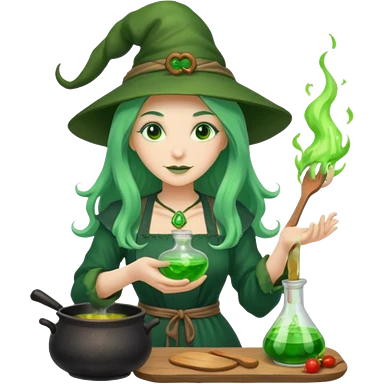 green witch cooking potion