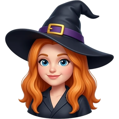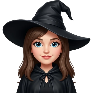 A brunette with green eyes and a witches hat with a cell phone emoji