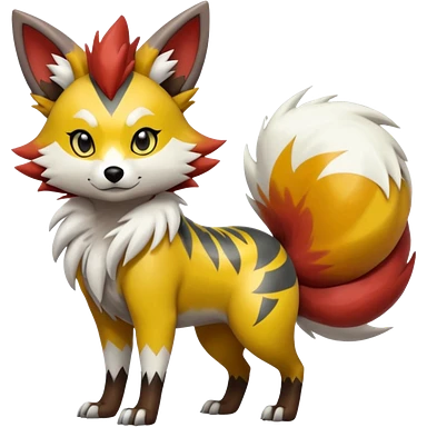 Gren-Yellow-Mango-Gradients-colored Lycanroc-Furret-Zorua-Poochyena-fusion, full body, with black and white edgy markings patterns emoji