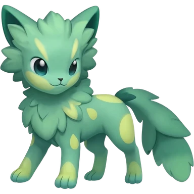 Greenish beautiful handsome gorgeous aesthetic colorful vibrant Vernid-Trico-species-Fakemon-creature by LiLaiRa, 4 legs, 1 tail, random markings, (full body) emoji | AI Emoji Generator