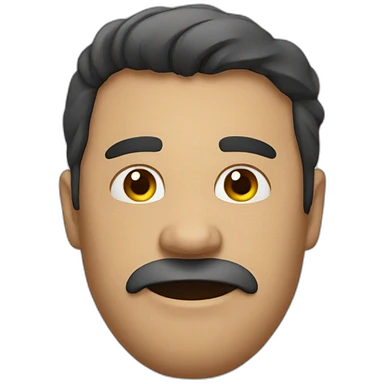 Hombre obeso latino piel canela, cara redonda-ancha, scruff sin barba completa, cejas gruesas, pelo oscuro ondulado flat largo hasta el cuello. Sonrisa amplia, expresión alegre. Camisa negra. Size large. emoji