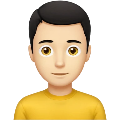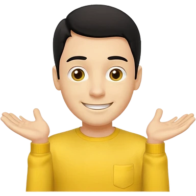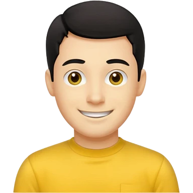 Greg Wiggle of The Wiggles with light skin, black hair, hazel eyes, yellow skivvy shirt emoji