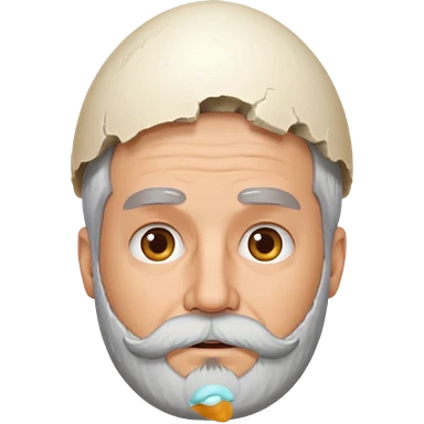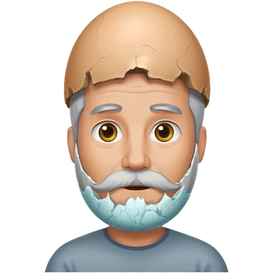 grey haired man with beard middle aged with a large egg shell on the head emoji