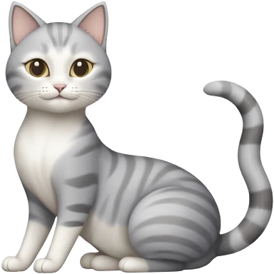 grey and white cat doing a big long stretch emoji