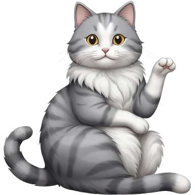 grey and white cat doing a big long stretch reaching up into the air emoji