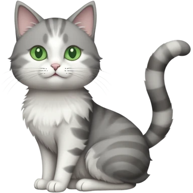 grey and white cat with green eyes doing a big extremely long stretch reaching up into the air with arms and legs side by side together straight and overextended whilst lying on its side emoji | AI Emoji Generator
