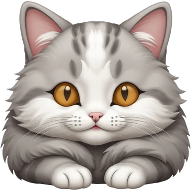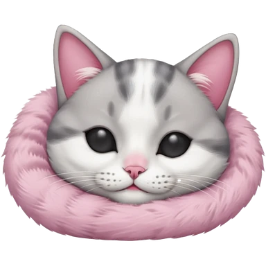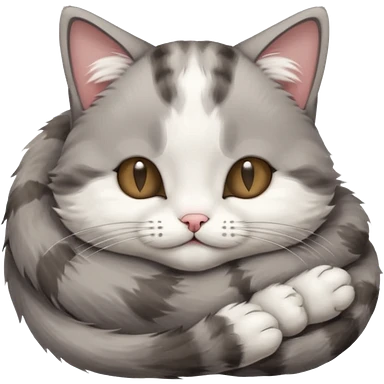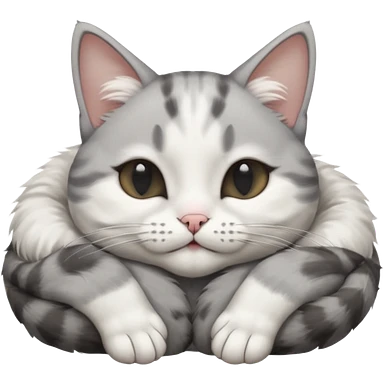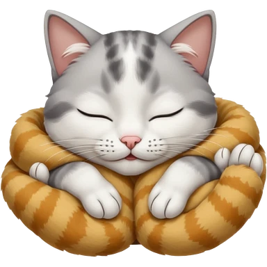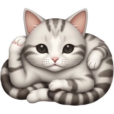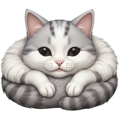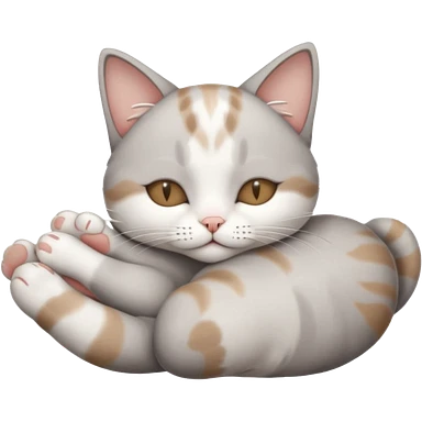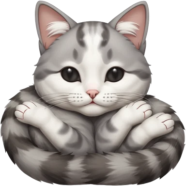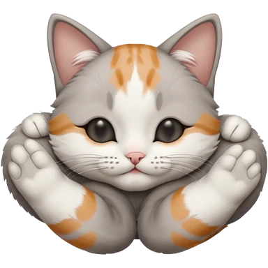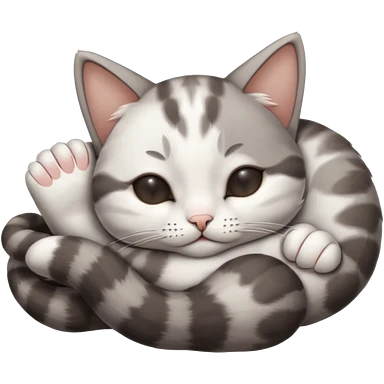 grey and white small cat with eyes closed lying down upside down with its head resting on its curled paw emoji | AI Emoji Generator