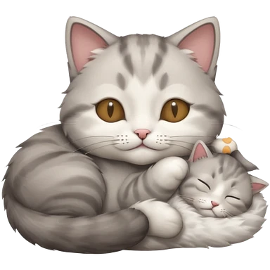 grey and white small cat with its eyes closed lying down with his paw curled under his head holding it up emoji | AI Emoji Generator