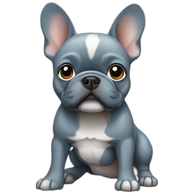 Dark grey French bulldog with white line on chest and blue eyes emoji