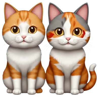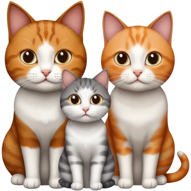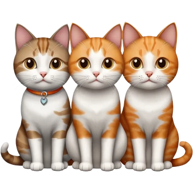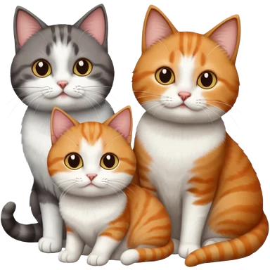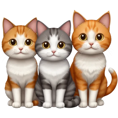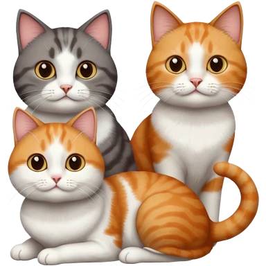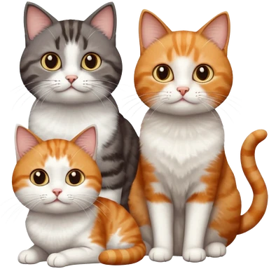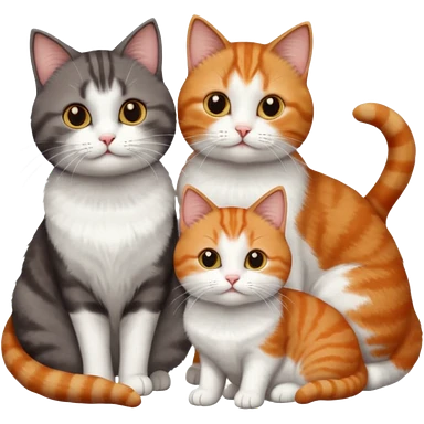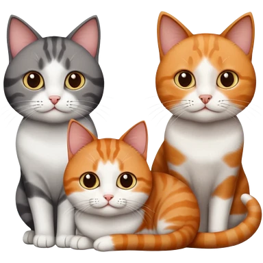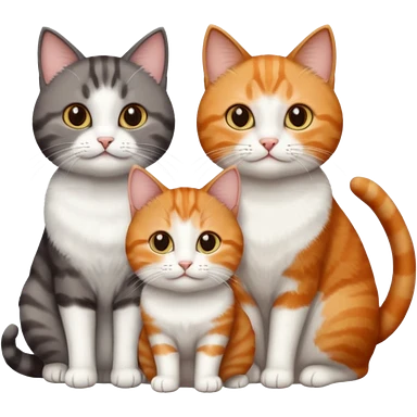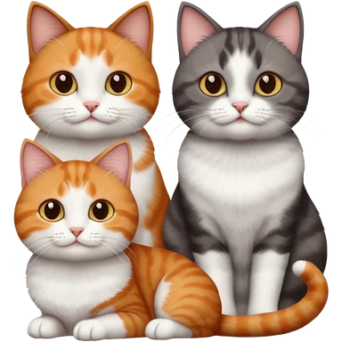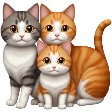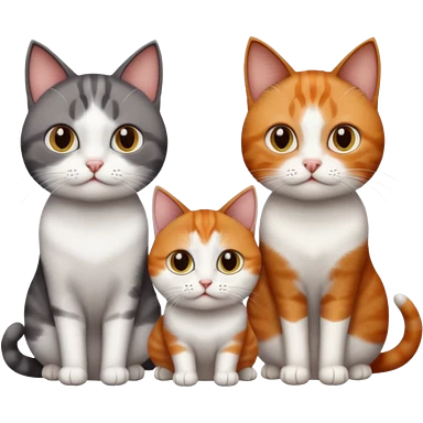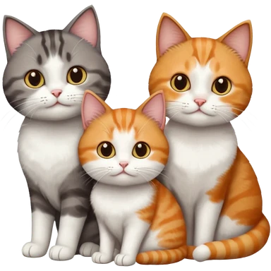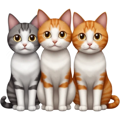 3 different coloured short haired cats including; a dark brown tabby and white cat, and a dark grey and white and a ginger and white emoji