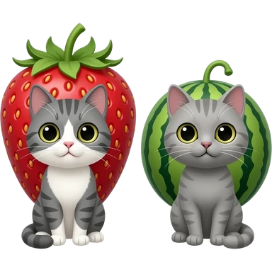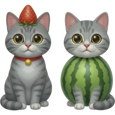 grey cat in round strawberry and grey cat in round watermelon emoji