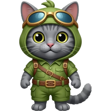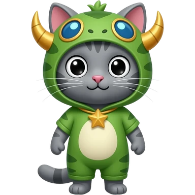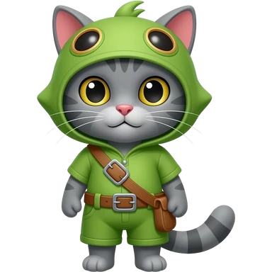 grey cat wearing teemo costume emoji