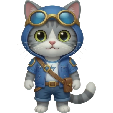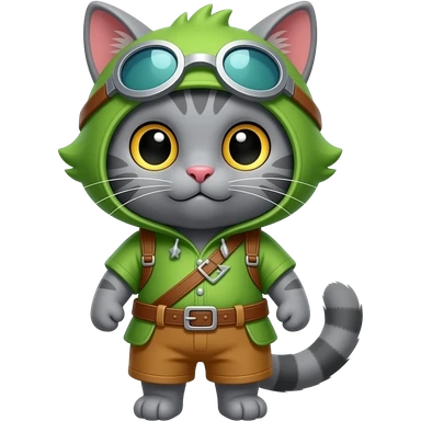 grey cat that is wearing league of legends timo costume emoji