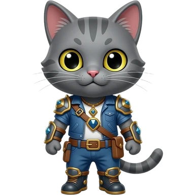 grey cat that is wearing league of legends emoji