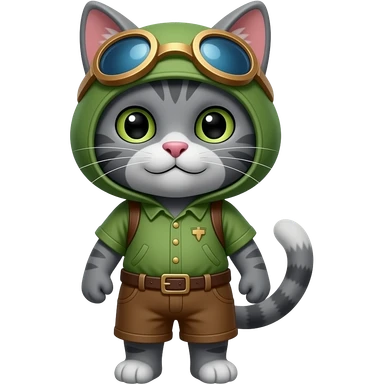 grey cat wearing league of legends teemo costume emoji