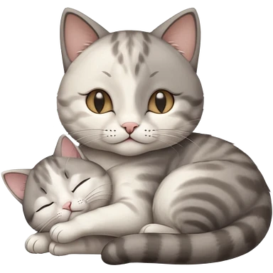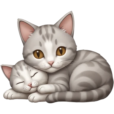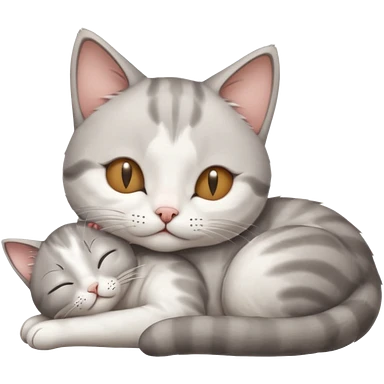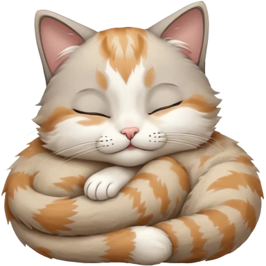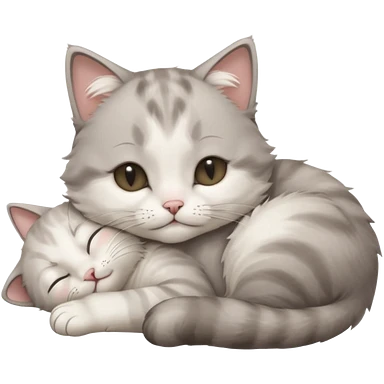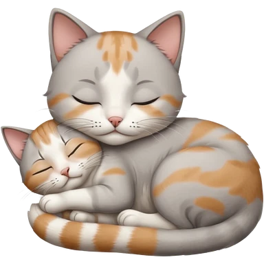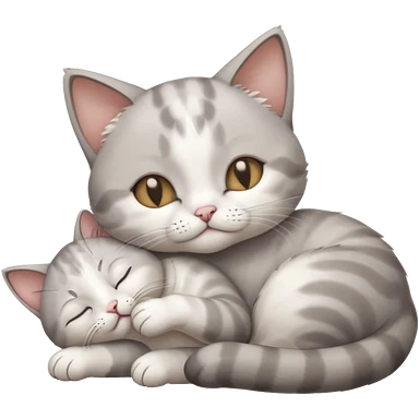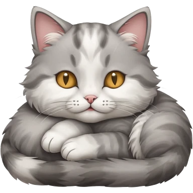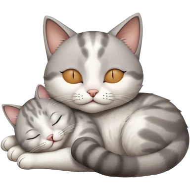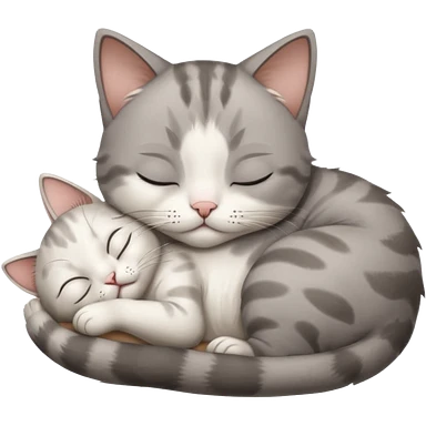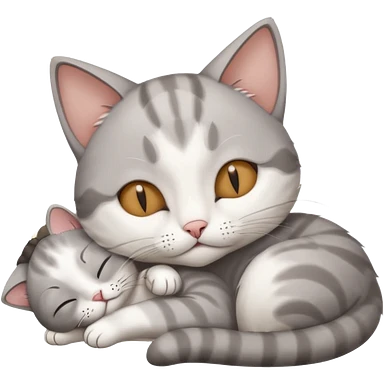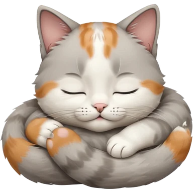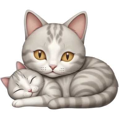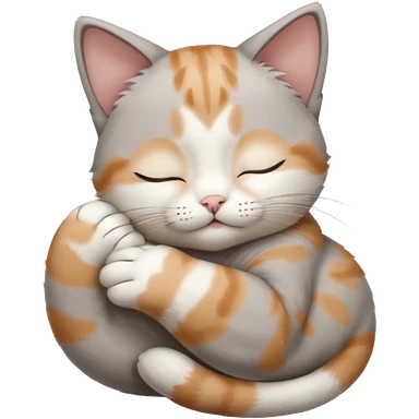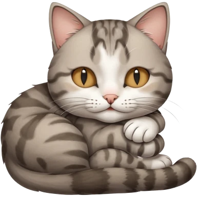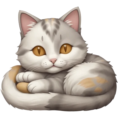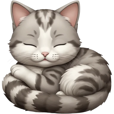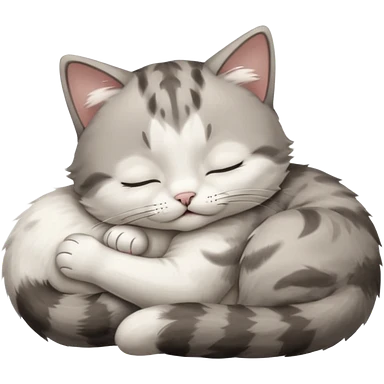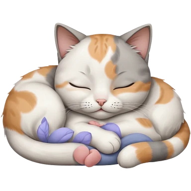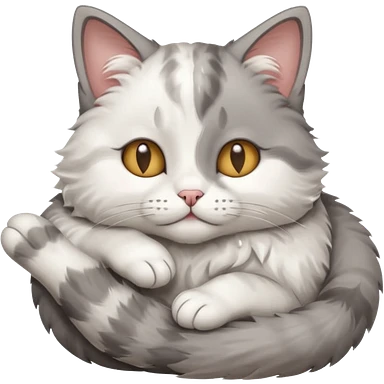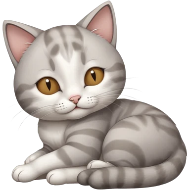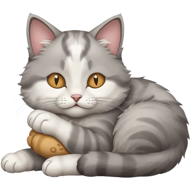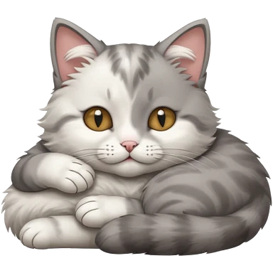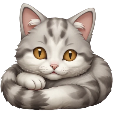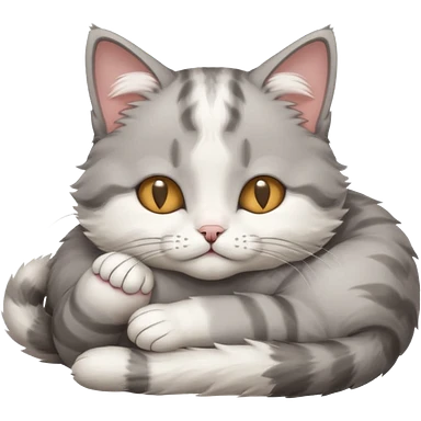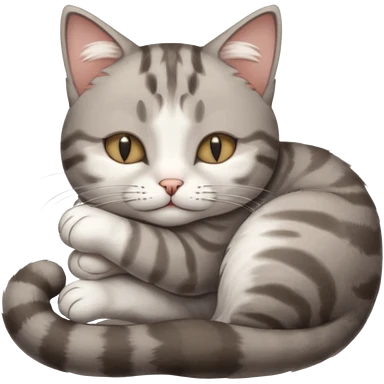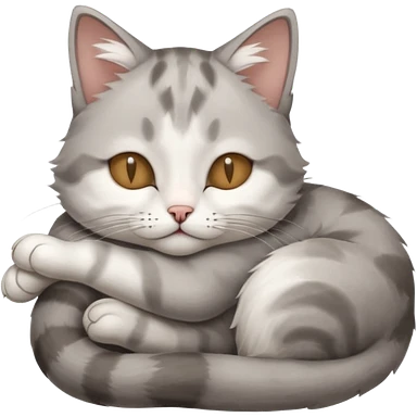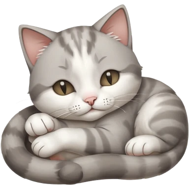grey and white small cat with its eyes closed lying down with his paw curled under his head holding it up emoji