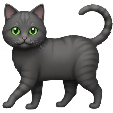 full body solid dark grey cat with green eyes, white paws and white whiskers walking emoji