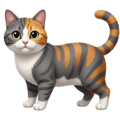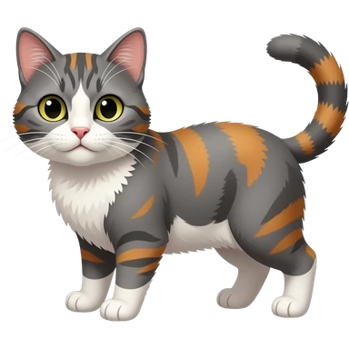 grey cat in looking like a big fluffy ball qui a tail and big bulging eyes, white belly, cartoon style emoji