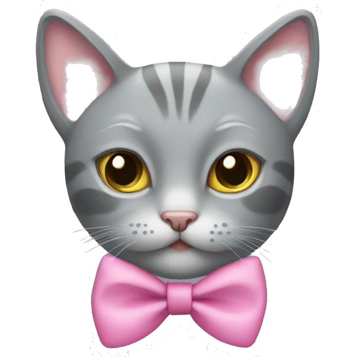 cute grey cat with yellow/orange eyes wearing a pink bow emoji