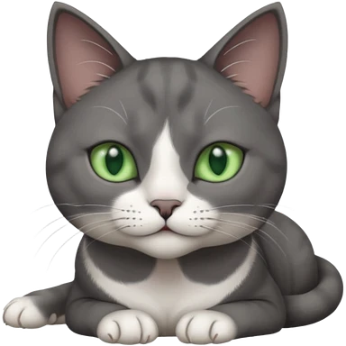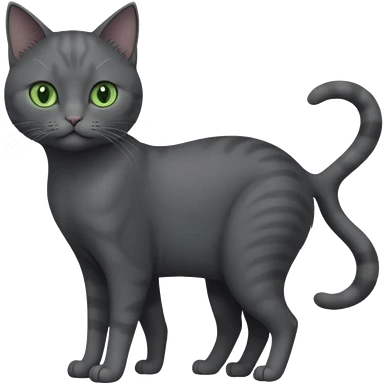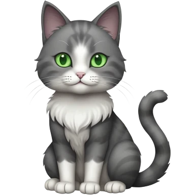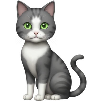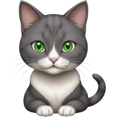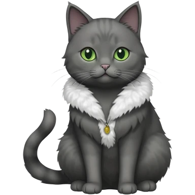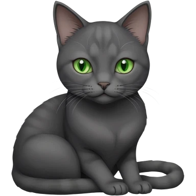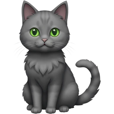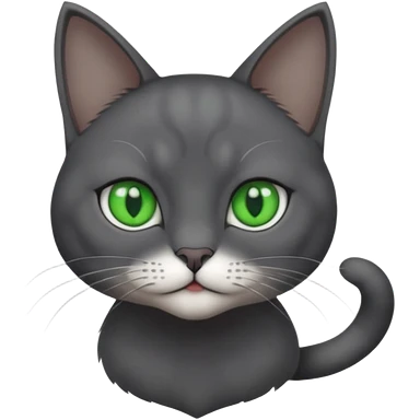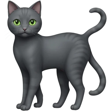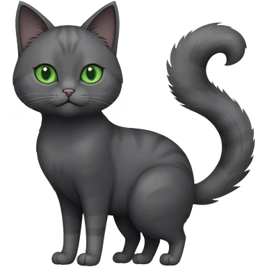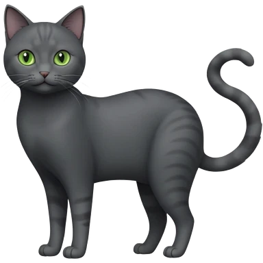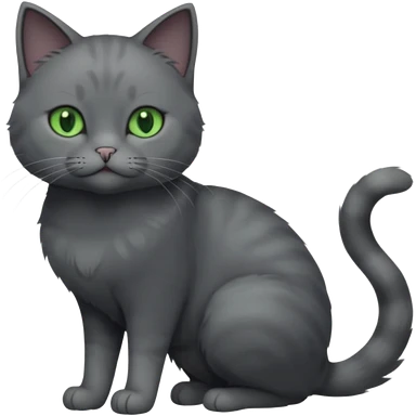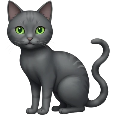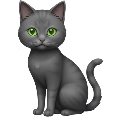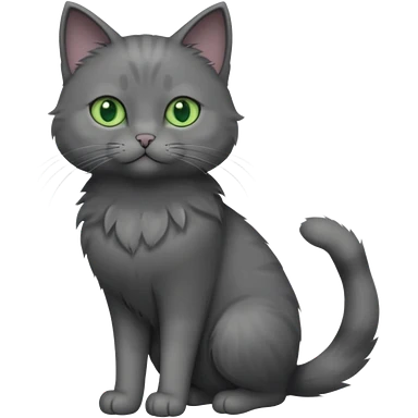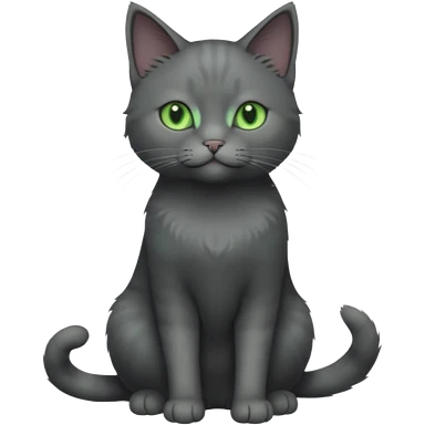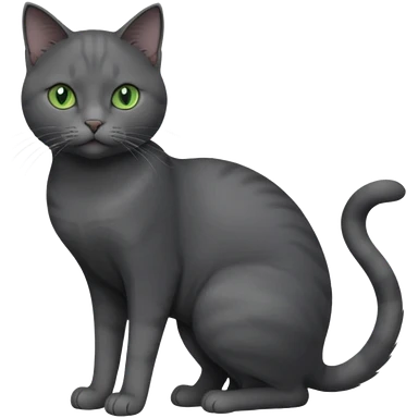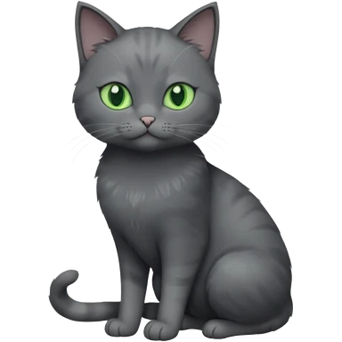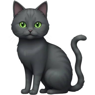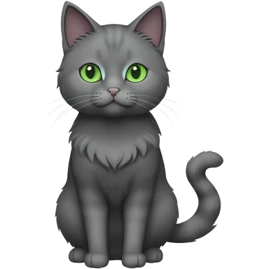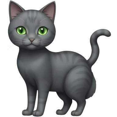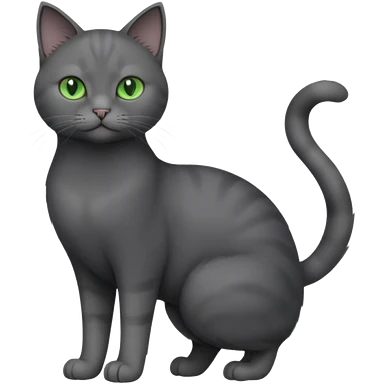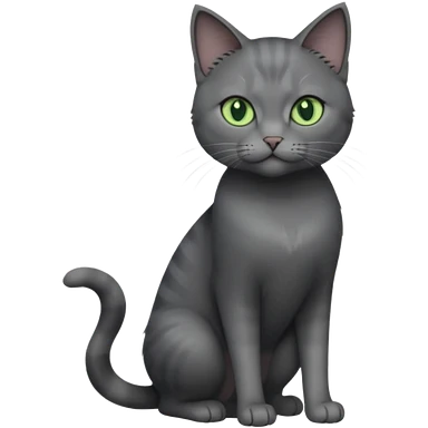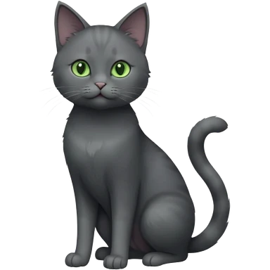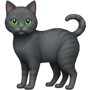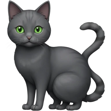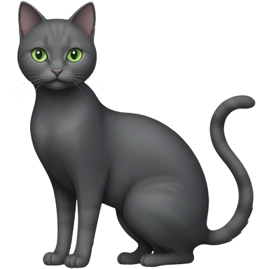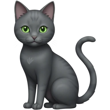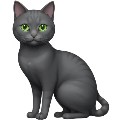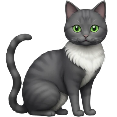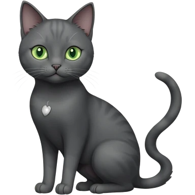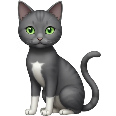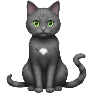 full body view of beautiful female solid dark grey cat with green eyes, grey face, white toes and white patch on chest emoji