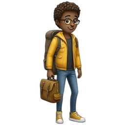 Grey cat with camera and a raincoat, yellow bagpack emoji | AI Emoji Generator