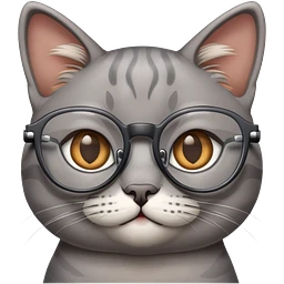 grey cat with nerd glasses emoji | AI Emoji Generator