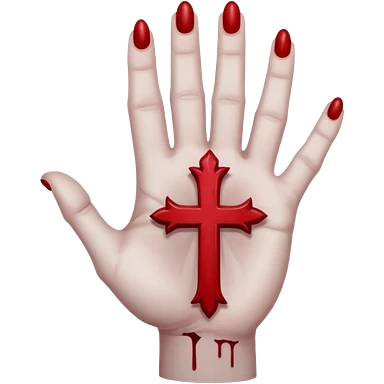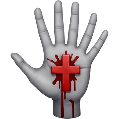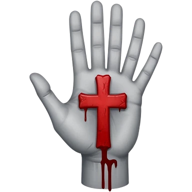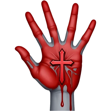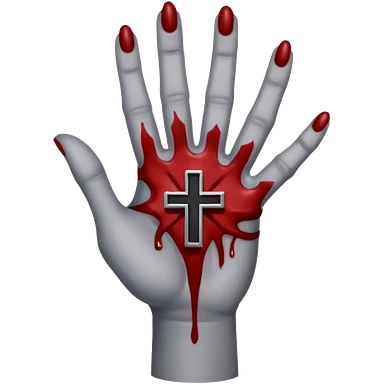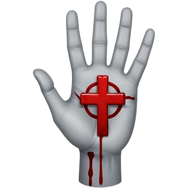 bloody grey hand with an upside down cross symbol on the palm emoji
