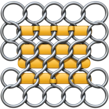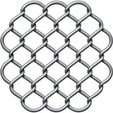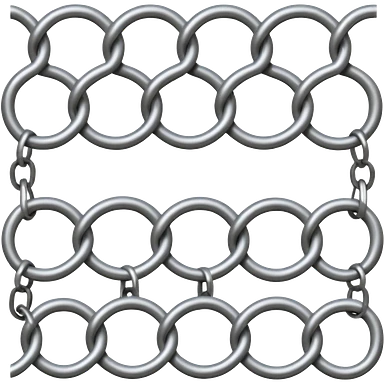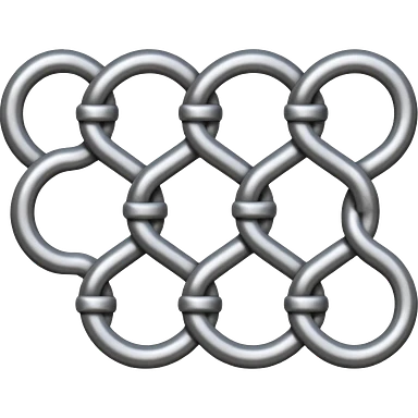 3D render of Chain Link Fence, made of interlocking chainmail metal rings, wire mesh texture, visible holes and negative space, metallic silver and grey, high contrast shadows, emoji style, isolated on white background --v 6.0. emoji