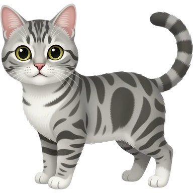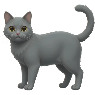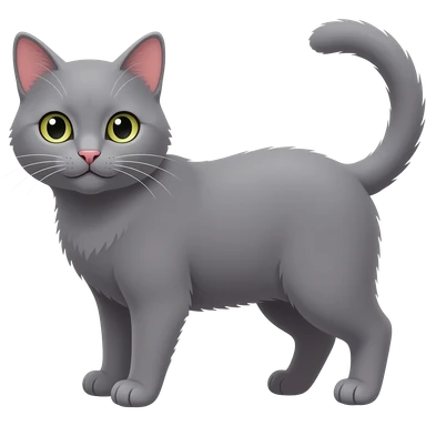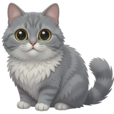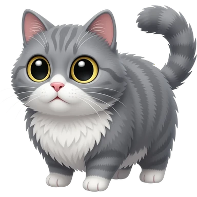 grey cat in looking like a big fluffy ball qui a tail and big bulging eyes, white belly, cartoon style emoji
