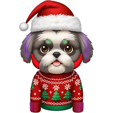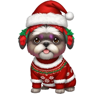 grey shih tzu tongue out with white dinosaur hoodie emoji