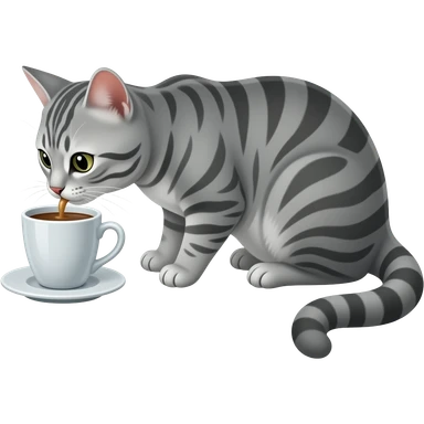 grey striped cat drinking coffee cup emoji
