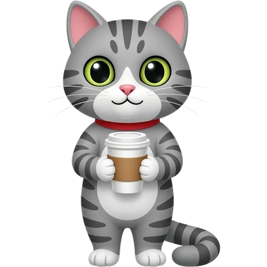 grey striped cat with coffee cup emoji | AI Emoji Generator