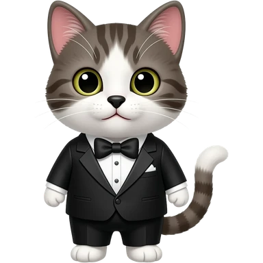 Friendly dark grey tuxedo cat with light green eyes emoji