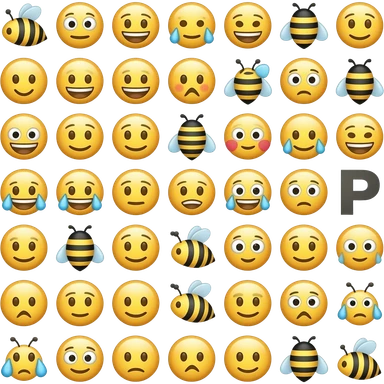 "grid of bee emojis and letter R, one letter P hidden, cartoon style" emoji