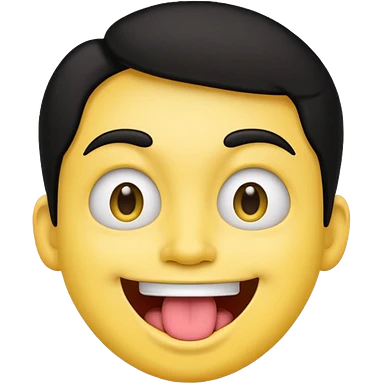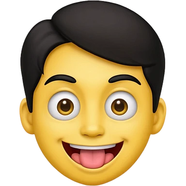 yellow face emoji smiling with huge tongue out and eyes wide open. Tongue should have the effect of wagging back and forth. Give him a head of black hair emoji