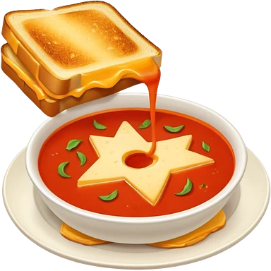 fancy grilled cheese sandwich with tomato soup emoji