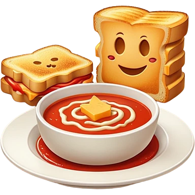 Crispy grilled cheese sandwich next to a bowl of tomato soup emoji
