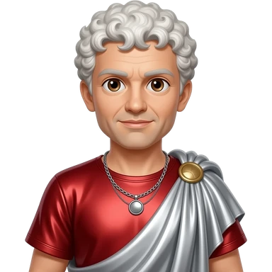 Julius Caesar with brown eyes, dark brown hair, red metallic tunic, white metallic toga emoji