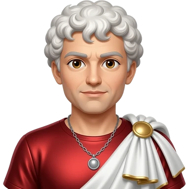 Julius Caesar with brown eyes, white blonde hair, red metallic tunic, white metallic toga emoji