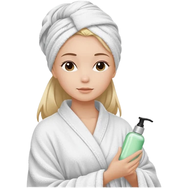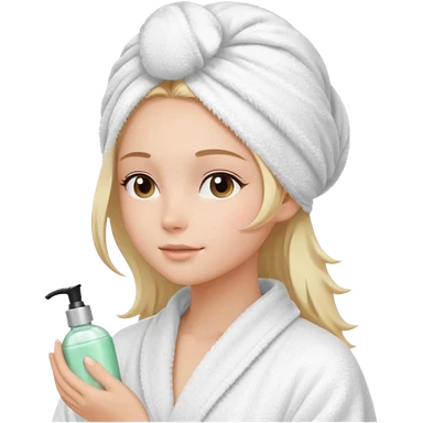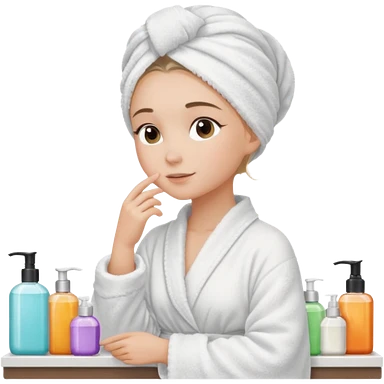girls side profile in robe and her hair in a towel with skin care on emoji