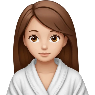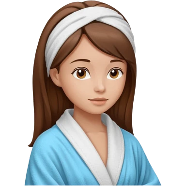 girls side profile in robe with brown hair and her hair in a towel with skin care on emoji