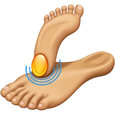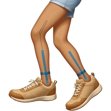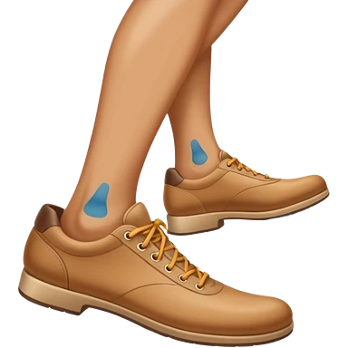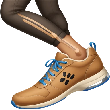 3D Apple-style emoji of a shoe with a foot inside, stepping and showing a clear shoe print below. and leg emoji