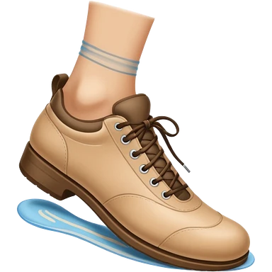 3D Apple-style emoji of a shoe with a foot inside, stepping and showing a clear shoe print below. emoji