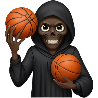 grim reaper wearing a black robe with a red inside. wearing a thorn crown. holding a bloody scythe in his left hand. holding a all black trident in his right hand. emoji