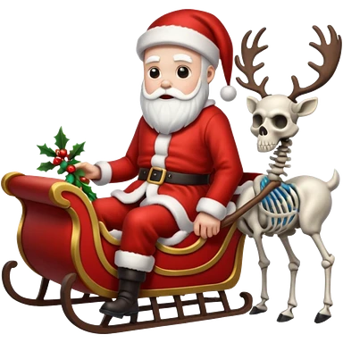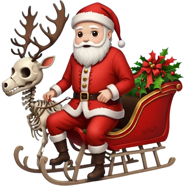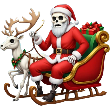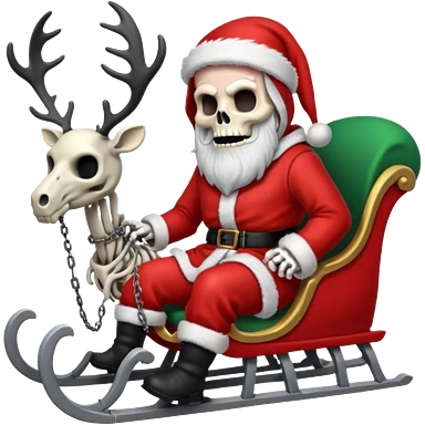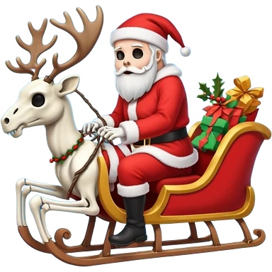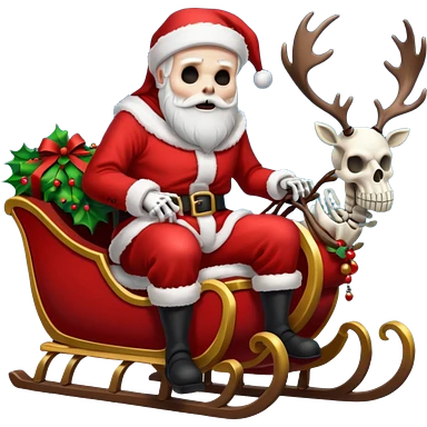 Grim Santa with a sleigh and skeleton reindeer emoji | AI Emoji Generator
