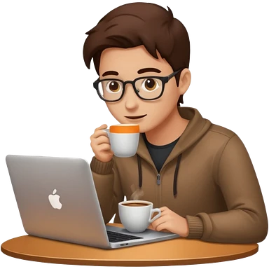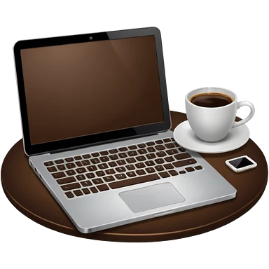 laptop and coffee are on the table. coffee is not on the laptop. emoji