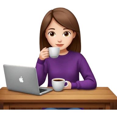 laptop and coffee are on the table. coffee is not on the laptop. the girl is drinking coffee. emoji